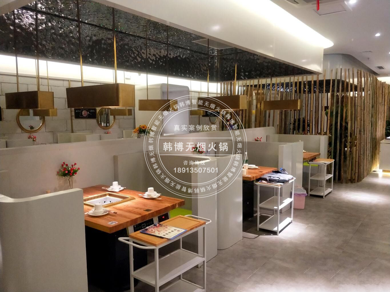 韓博無煙火鍋與上海理工大學科研團隊緊密合作,針對各火鍋店不同的餐飲風格提供定制化服務(定制鍋具,定制餐桌造型,定制智能點餐系統)。